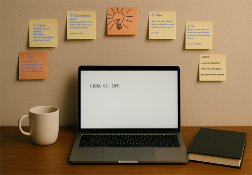 Tratamos o roteiro como uma coreografia entre intenção e acaso. Estruturamos o caos, mas sem esterilizar a essência. Nossos projetos passam por ciclos intensos de sala de roteiro, mesa bagunçada, paredes cheias de post-its, conversas que atravessam madrugada, ensaios. Buscamos equilíbrio entre forma e conteúdo, entre impacto e sutileza — porque contar uma boa história é também saber o que não contar.